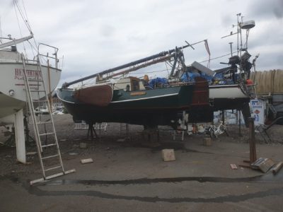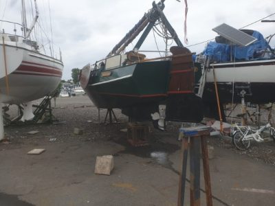 VERKOCHT Zeeschouw Stalen platbodem 7,5m zeilboot